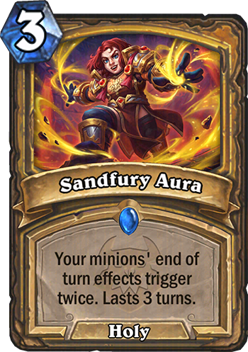 Sandfury Aura is a 3 Mana Cost Rare Paladin Spell card from the CATACLYSM set!
