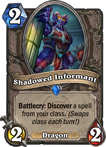 Shadowed Informant is a 2 Mana Cost Rare Neutral Minion Dragon card from the CATACLYSM set!