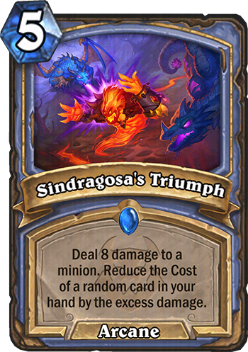 Deal 8 damage to a minion. Reduce the Cost of a random card in your hand by the excess damage.