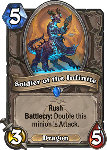 Soldier of the Infinite is a 5 Mana Cost Rare Neutral Dragon card from the Across the Timeways set!