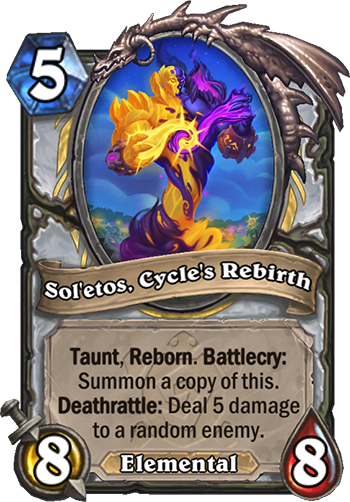 Sol’etos, Cycle’s Rebirth is a 5 Mana Cost Free Priest Minion Elemental card from the The Lost City of Un'Goro set!
