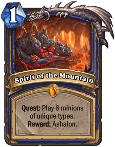 Spirit of the Mountain is a 1 Mana Cost Legendary Shaman Spell card from the The Lost City of Un'Goro set!