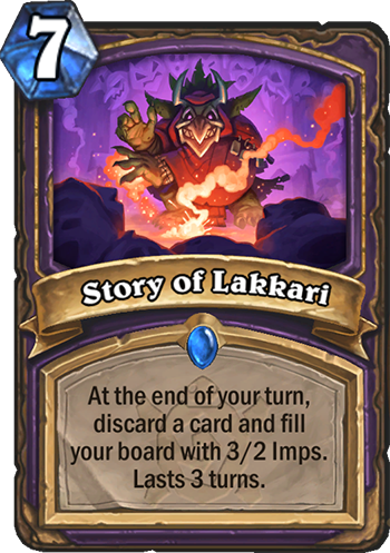 Story of Lakkari is a 7 Mana Cost Rare Warlock Spell card from the The Lost City of Un'Goro set!