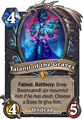Talanji of the Graves is a 4 Mana Cost Legendary Death Knight Minion Undead card from the Across the Timeways set!