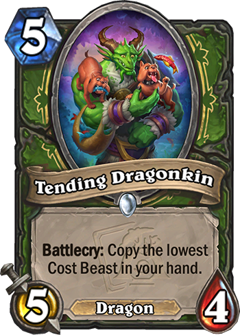 Tending Dragonkin is a 5 Mana Cost Common Hunter Minion Dragon card from the The Embers of the World Tree set!