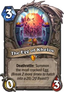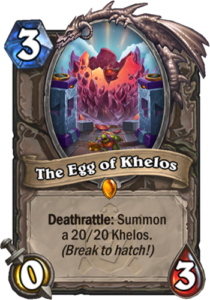 The Egg of Khelos is a 3 Mana Cost Legendary Neutral Minion card from the Day of Rebirth set!