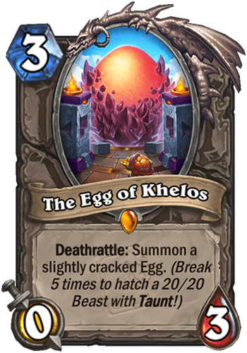 The Egg of Khelos is a 3 Mana Cost Legendary Neutral Minion card from the Day of Rebirth set!