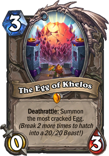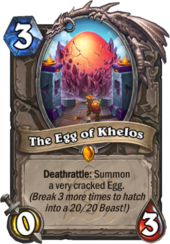 Deathrattle: Summon a slightly cracked Egg. (Break 5 times to hatch into a 20/20 Beast with Taunt!)