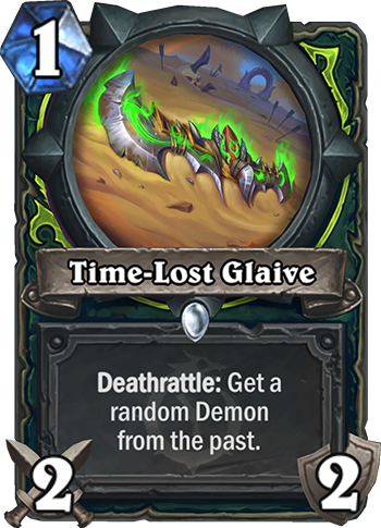 Time-Lost Glaive is a 1 Mana Cost Common Demon Hunter Weapon card from the Across the Timeways set!