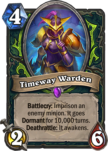 Battlecry: Imprison an enemy minion, it goes Dormant for 10,000 turns. Deathrattle: It awakens.