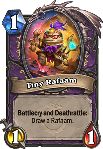 Battlecry and Deathrattle: Draw a Rafaam.