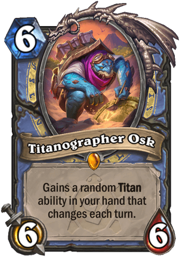 Titanographer Osk is a 6 Mana Cost Legendary Mage Minion card from the The Lost City of Un'Goro set!