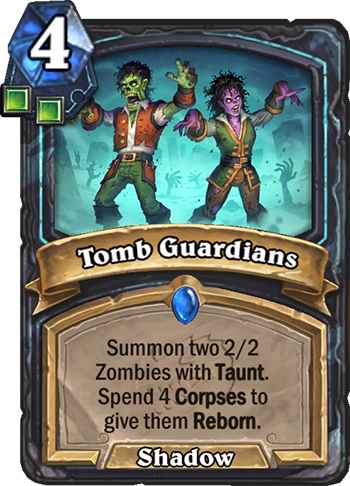 Summon two 2/2 Zombies with Taunt. Spend 4 Corpses to give them Reborn.
