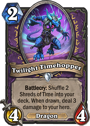 Battlecry: Shuffle 2 Shreds of Time into your deck. When drawn, deal 3 damage to your hero.