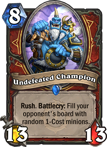 Undefeated Champion is a 8 Mana Cost Rare Warrior Minion card from the Across the Timeways set!