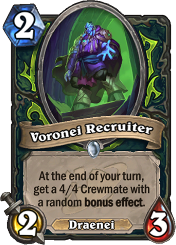 Voronei Recruiter is a 2 Mana Cost Common Demon Hunter Minion Draenei card from the The Great Dark Beyond set!