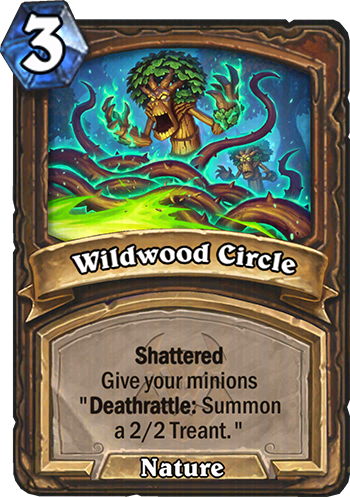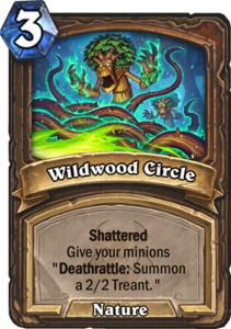 Shatter. Summon two 2/2 Treants. Give your minions "Deathrattle: Summon a 2/2 Treant."