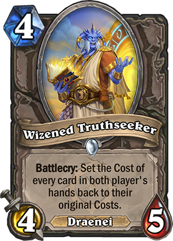 Wizened Truthseeker is a 4 Mana Cost Common Neutral Minion Draenei card from the Across the Timeways set!
