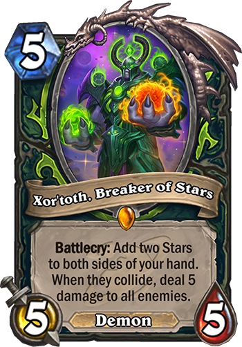 Battlecry: Add two Stars to both sides of your hand. When they collide, deal 5 damage to all enemies.