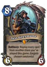 - Cards from The Lich King are considered Death Knight class cards, and Tess will replay them. Cards from Ysera are neutral, and Tess will not replay them.