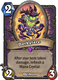 - Darkglare – It’s the bread and butter of this build – you want to keep it, since it will let you do some crazy mid game plays. If it sticks you can often play 4-6 extra mana worth of stuff next turn. And in the worst case scenario, it’s a 3 mana 3/4.