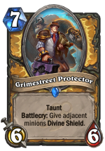 so the decks main goal is to play Stubborn Gastropod and tilt the opponent off ,and you can give your Stubborn Gastropod mostly divine sheilds more health with Spikeridged Steed well the deck can work without the Stubborn Gastropod you can play a bunch of taunts and then win the game by that.And its on wild because a key card of the deck is Grimestreet Protector