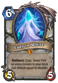 Been having a lot of this deck, i’m a free to player so i haven’t crafted the two bears because i know ill get them eventually and i don’t have elise because i don’t feel like crafting her, so instead i have two cobalt scale banes and a gurubashi berserker and a obsidian statue instead of a matriarch. really the deck by itself has enough value to win without lady in white, i haven’t drawn her in the last like 4 games but i still win thanks to the scalebanes and stone hill defenders. don’t get me wrong, drawing lady in white is an insta win pretty much, the sheer value of all those extra stats is insane, but im saying even if you don’t draw her it’s a great deck