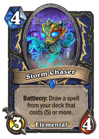 When it comes to the new cards, another one that fits in perfectly is Storm Chaser. It’s like Sandbinder in Shudderwock Shaman, just better – 3/4 stats are significantly stronger than 2/4, because so many early-mid game minions have 3 health right now. You run two spells costing 5 or more – Volcano and Eureka!, and both of them are very important. Volcano is your best board clear / stall tool, while Eureka is the way you activate combo, which also makes it necessary. With Storm Chaser, the chance that one of the Eurekas will be stuck at the bottom of your deck is incredibly low. With 4 copies of 5+ mana spells in total, it’s unlikely that you will draw all of them before drawing your Storm Chasers too, not to mention that the deck has no other cards it really wants to drop on Turn 4, so they will play an important role in this archetype.