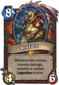 – Try to have a Blood Razor ready before you drop Rotface. Or use Scourgelord Garrosh Hero Power to activate its legendary-summoning ability. Being an 8-cost minion means it’s usually difficult to play something with it the same turn. Same goes for Grommash Hellscream.