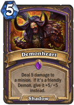 A control/fatigue warlock variant built around Master Oakheart. The dream Oakheart package is Tar Creeper for 1, Deathlord for 2, and Voidlord for 3. The only other potential target for 1 is a single Tar Creeper which is still a solid option. Use your spells and Doomsayers to keep your opponent’s board clear until you can find and cast Oakheart. Gul’dan is for getting double milage out of your Voidlords and will even sometimes bring back Dreadlords and Imps. Your spells restore lots of health so you ideally want to use your hero power every turn until you find Oakheart. Dragonslayer is a nice tech card to deal with Scalebanes and Operatives run in dragon priest and spiteful priest. Demonheart is great for putting a Dreadlord out of reach from damage removal or combat damage, and can also create a 6/6 Imp when it has no other target.
