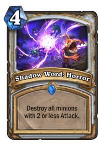 - Shadow Word: Horror – Shadow Word: Horror provides a direct answer to many wide boards that present themselves on turn four.