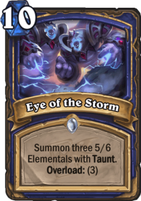 To be fair, it’s not always good to compare cards like that – Dragon’s Pack pre-nerf was absolutely broken, so being a bit worse than something broken is not bad. However, Eye of the Storm is not “a bit worse”, it’s way, way worse. I can KIND OF understand 10 mana, but 10 mana AND 3 Overload? That’s just an overkill. 10 mana effects are meant to be powerful. Look at cards like N'Zoth, The Corruptor, like Bloodreaver Gul'dan or even Zul'jin. For 10 mana you want a game-winning effect, or at least something that your opponent will have a lot of troubles dealing with. This has no immediate effect (as in doesn’t remove anything, give you any more value etc.) and it just takes one bigger AoE to clear.