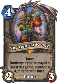 And this card is going into lots of Quest builds, I would say. It’s a bit like Questing Explorer, but more flexible. Both are stronger than the usual minion for their mana, but in case of Adventurer, there’s no point in running it if you want to finish your Quest quickly. Kragg only requires you to have played a Quest at one point in the game, it doesn’t have to be active. Which makes it way better in the late game, especially in decks that want to finish Quest quickly (such as Quest Druid).