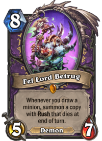 I also would not Dust any of the Rise of Shadows cards yet. Betrug has some potential. I honestly don’t think that it’s even going to be an amazing card, but anything can happen in Hearthstone.