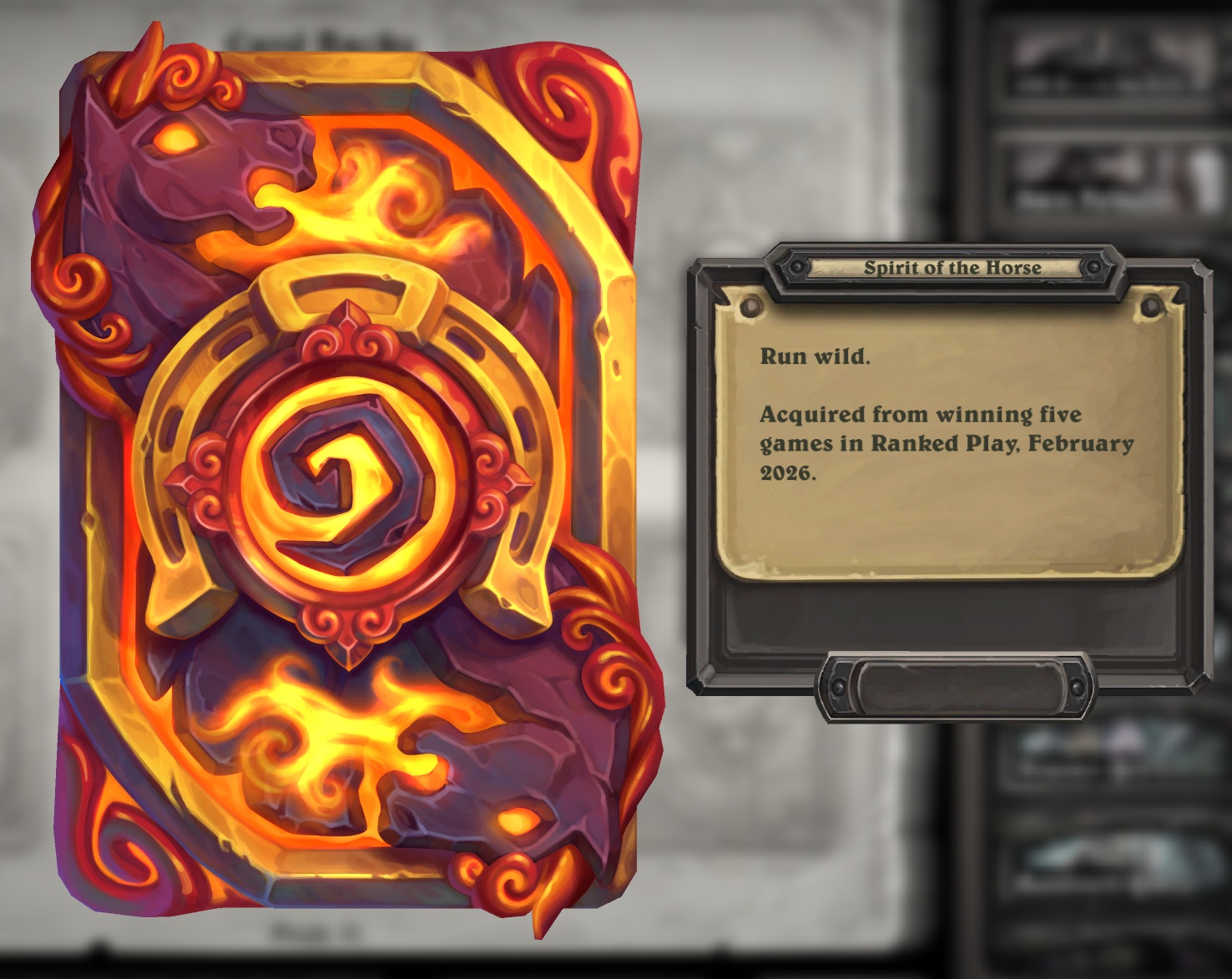 If you win 5 games on the Hearthstone ladder, this is the card back you will receive this month (February 2026):