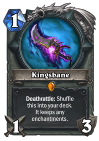 The card I’m most excited for from the upcoming Kobolds and Catacombs set is definitely Kingsbane. This card allows us to make good use of mediocre cards like Leeching Poison, and might even be enough to justify the use of post-nerf Blade Flurry. I wouldn’t have quite as much faith in Kingsbane if we weren’t also getting Cavern Shinyfinder. If Kingsbane is the only card in the deck, Cavern Shinyfinder draws it every time. It doesn’t matter if you draw Kingsbane first either, as once it’s destroyed it shuffles itself back into your deck, buffed and ready for Cavern Shinyfinder to pull it out again. Using your Hero Power: Dagger Mastery after playing Kingsbane also prevents fatigue (or by playing Kingsbane twice with Valeera the Hollow‘s Hero Power), so it might even have applications in Mill Rogue, but we’ll see.