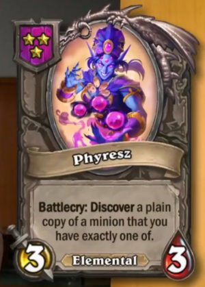 Phyresz (Zephrys the Great) is a Tier 3 Elemental Battlegrounds card