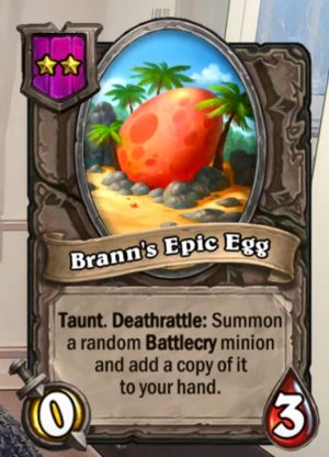 Brann’s Epic Egg (Dinotamer Brann) is a Tier 2 No Type Battlegrounds card