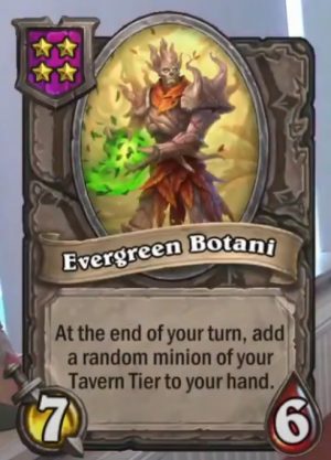 Evergreen Botani (Forest Warden Omu) is a Tier 4 No Type Battlegrounds card