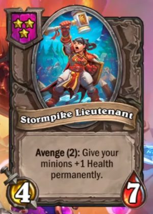 Stormpike Lieutenant (Vanndar Stormpike) is a Tier 3 No Type Battlegrounds card