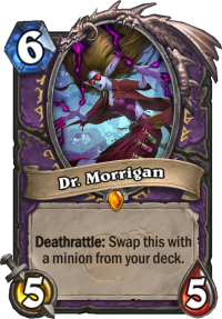 Dr. Morrrigan is not that bad. It’s acts a bit like Cairne Bloodhof and can either be stronger and weaker depending on the minions in the deck, and we all know Cairne Bloodhof is a very strong value minion. The problem with Dr. Morrigan is there is good control warlock at the moment.