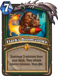 Actually, minions summoned by Flark’s Boom-Zooka die immediately not at the end of the turn, so you can combo it with revenge of the wild.