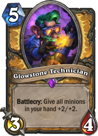 Remember Handbuff cards from Mean Streets of Gadgetzan? It was supposed to be Paladin’s theme for the expansion, but let’s be honest, it didn’t really work that well. There were some brief moments during which the deck was okay, but it was never amazing. So you can probably imagine that people weren’t exactly excited to see a Glowstone Technician when it first dropped. For a good reason – initially, the card was just too slow. Sure, giving your entire hand +2/+2 is good, but if you could only do it on Turn 6, it was no longer that relevant. If you played it in a faster deck, you didn’t have enough cards to play at that point, and slower Paladin decks weren’t minion-based.