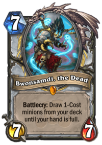 Do you want to put more 1-drops into Priest? Maybe, if you’re playing a sort of Tempo / Aggro Priest. But I just don’t see it. Even in a deck like that, you still don’t want to put THAT many 1-drops. Just think about Quest Hunter and why the deck is bad. Playing a lot of 1-drops is not a good idea – they are impactful on Turn 1, but get much worse in the mid game and are nearly useless in the late game. If we’re talking about regular 1-drops without late game scalling, the only thing that Bwonsamdi would do in such a deck would be increasing the quality of further draws. But that’s not very important in a deck that wants to finish the game just around the time it drops this Legendary. So no.