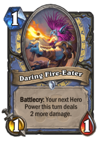 It seems like Hero Powers will be one of the Mage’s themes this expansion. However, as much as I really like the Mage’s Loa, this card seems a bit clunky to use. This + Hero Power is a 4 mana version of Shooting Star. It’s true that if you play it one turn, you can Hero Power again next turn (assuming it doesn’t die to AoE), but then it’s 6 mana for 2x Shooting Star – still not a great deal. In order to make it work, you really need your Hero Power synergies, such as the new Daring Fire-Eater. But then it’s basically the same thing as Cosmic Anomaly + Shooting Star, but it leaves a less scary board behind. Of course, you can add more pieces to the combo – e.g. Pyromaniac, but it makes it even more expensive and less consistent (8 mana 3 cards combo is not something you want to hoard in a Midrange deck like that). Then, cards like Daring Fire-Eater of Pyromaniac are quite mediocre by themselves, with no other synergies.