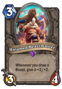 I think Untamed Beastmaster will be a good fit in a Beast Druid. It combos well with Juicy Psychmelon: You can drop it on 3 and if it survives you Psychmelon 4 big beasts (e.g. Ironhide Direhorn, Charged Devilsaur,Oondasta and Tyrantus) and get +8/+8 = 11/12 on turn 4
