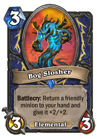 It also works nicely on cheap minions with Battlecries, e.g. Witch's Apprentice – for 5 mana, you can play Witch’s Apprentice, bounce it and replay it again – you get 2 random Shaman spells, a 3/3 and a 2/3 Taunt. Pretty solid value play and not a very bad tempo play.