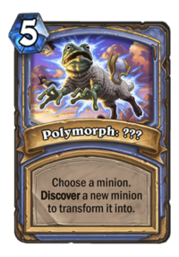 But there’s more to that card. Unlike Polymorph, you can also use it on your own minions. The best case scenario is: you have something small, preferably some 1-drop like Babbling Book, you cast it on that minion and pick something big. But here’s the problem – the actual ratio of really big, powerful minions to those “small” or “medium” is pretty low. And while yes, rolling some 5-drop (which should be pretty common) won’t really be the end of the world, but will it actually be good? Definitely not. Not only you need to have a minion on the board, but you also need to sacrifice it so you have something you can transform AND play the 5 mana. Transforming anything bigger than 1-drops or 2-drops will just be too risky, as you might pay 5 mana and a card for almost no upgrade. Like, if you transform a 4-drop and roll a 5-drop, that’s like a 5 mana Evolve.