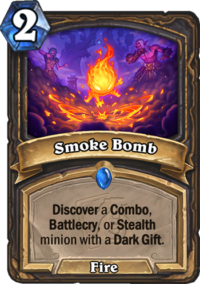 So, that’s the theory – cantrips are usually good, or at least above average. But it doesn’t mean that a cantrip is automatically a good card. It heavily depends on how much it costs and what’s the card’s effect. Smoke Bomb costs 1 mana, which is great. The effect is one turn of Stealth for a single minion, which places it… probably somewhere in the middle. The effect is not amazing, but it has some upsides. You can hide a high attack, but low health minion to prevent your opponent from pinging it or trading something small into it. You can hide a minion with an ongoing effect, so it gets a nearly guaranteed tick. You can also hide a strong minion to set up lethal if your opponent is low, but you suspect that they might be holding removal. And finally, you can use it to pass through a Taunt! Since there is no restriction, you can play it on your opponent’s minions. Putting a Taunt minion to Stealth basically negates his Taunt as long as the minions is hidden.