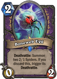 However, the extra effect is what might push it into being amazing. If you Discard it, instead of simply “losing” the card, you end up summoning 2x 2/1 minion for free. So you turn a downside into an upside (because Zoo loves free tempo). The card is on a similar power level to Silverware Golem, probably even stronger, because even ignoring Discard effects, I would rather put the Egg and not a vanilla 3 mana 3/3 into my deck. And Silverware Golem was really amazing tempo tool in Discard-oriented Warlock.
